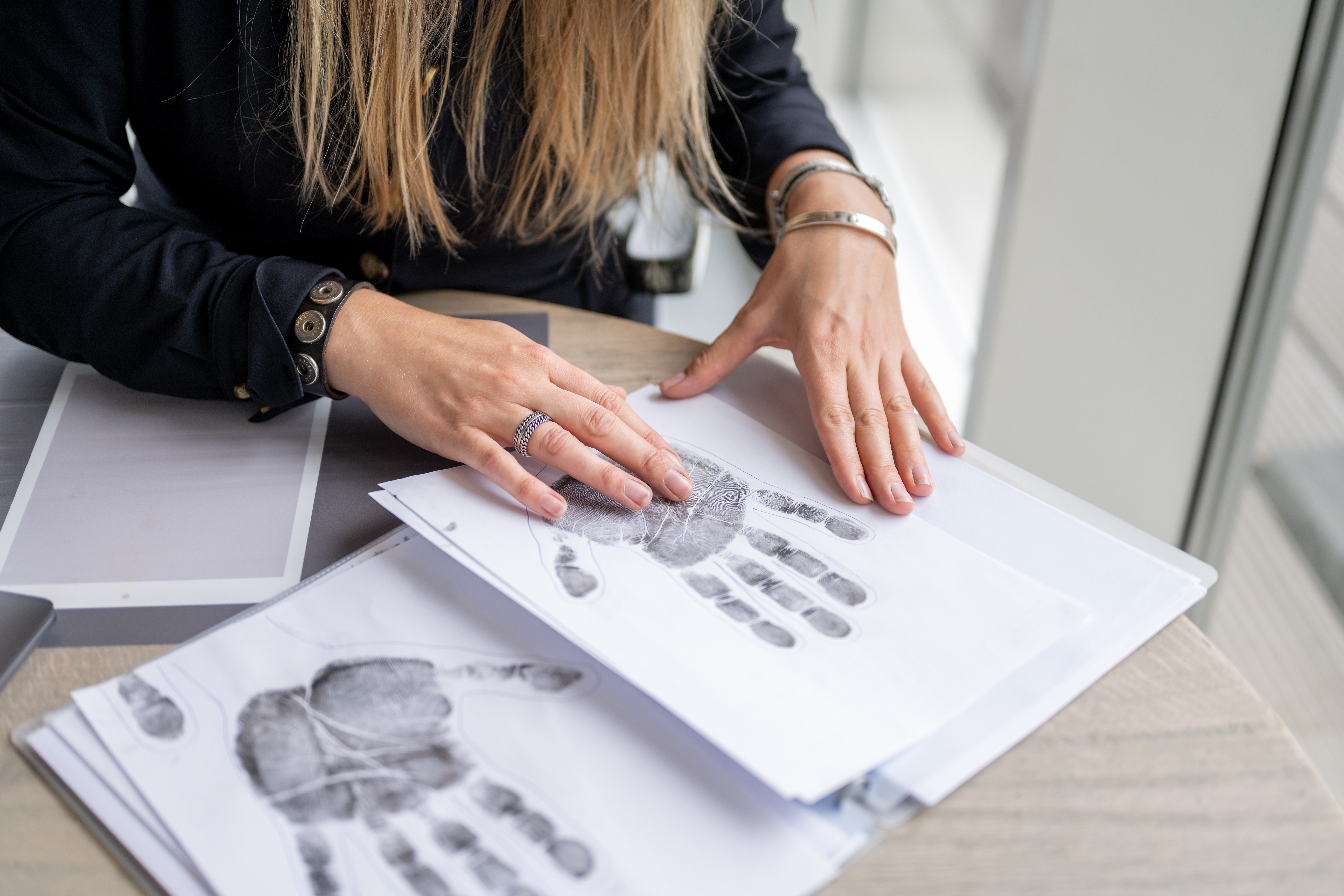Je maakt handafdrukken die je mee naar huis neemt, als tastbare herinnering aan wat zichtbaar werd.